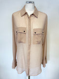 MINT VELVET APRICOT & BLACK SPOT LONG SLEEVE PLEATED FRILL CUFF BLOUSE SIZE 14