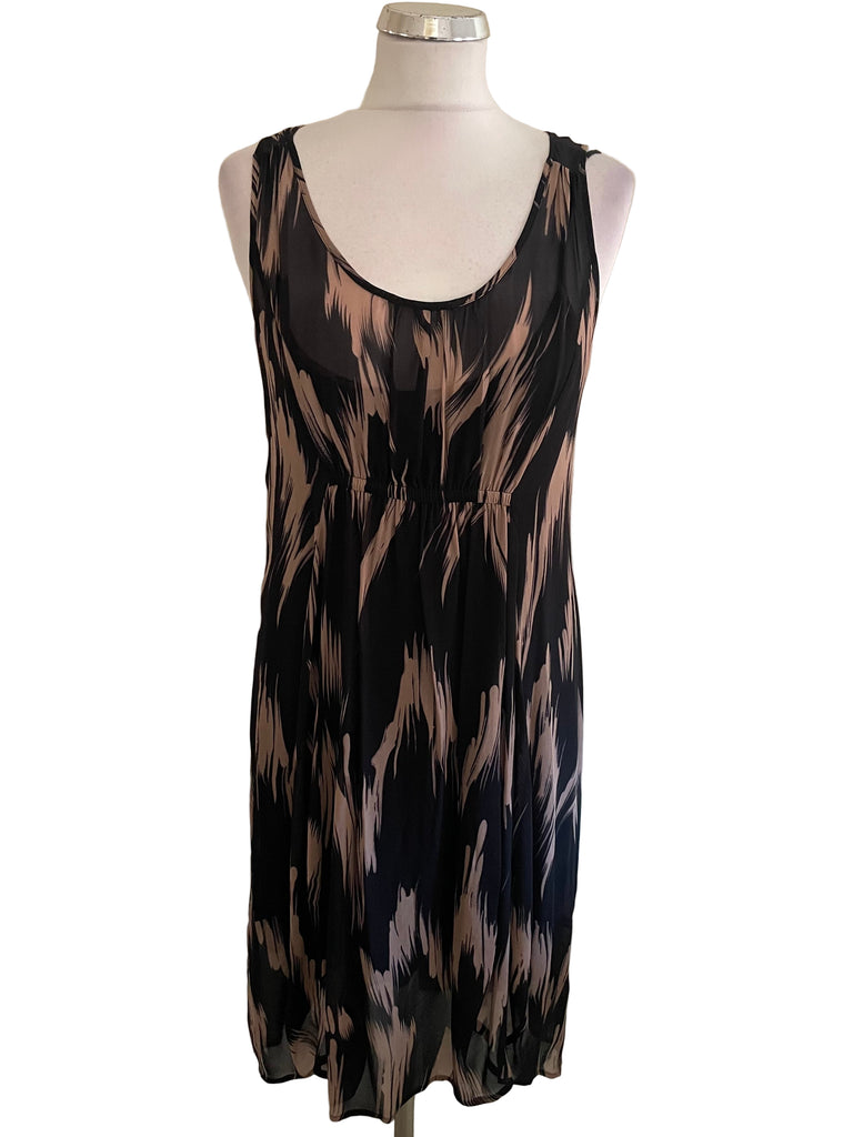 MINT VELVET BLACK & BROWN PRINT SLEEVELESS DRESS SIZE 12