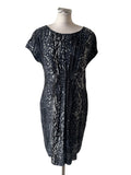 MINT VELVET BLACK,GREY & WHITE PRINT CAP SLEEVE SHIFT DRESS SIZE 8