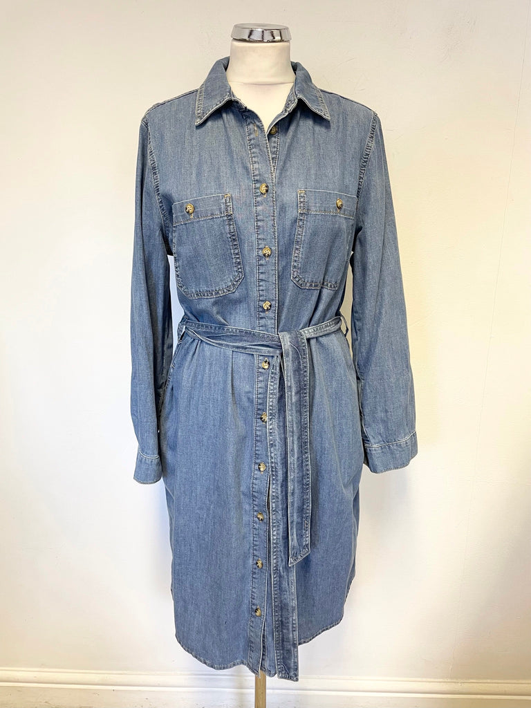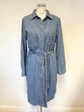 MINT VELVET BLUE DENIM COLLARED LONG SLEEVED BELTED SHIRT DRESS SIZE 14