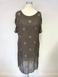MINT VELVET KHAKI STAR EMBROIDERED SHEER OVERLAY TUNIC TOP SIZE 12