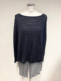 MINT VELVET NAVY BLUE & WHITE STRIPE TUNIC WITH NAVY OVER FINE KNIT JUMPER SIZE 12
