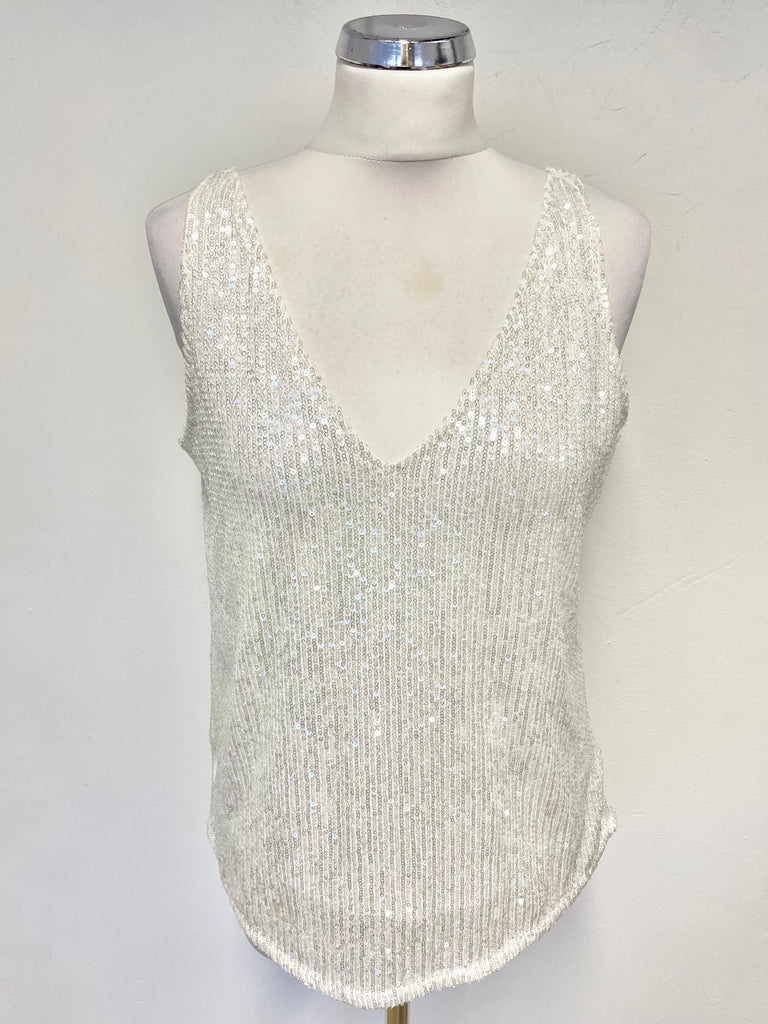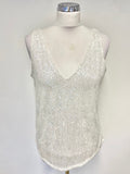 MINT VELVET WHITE SEQUINNED V NECK SLEEVELESS TOP SIZE M