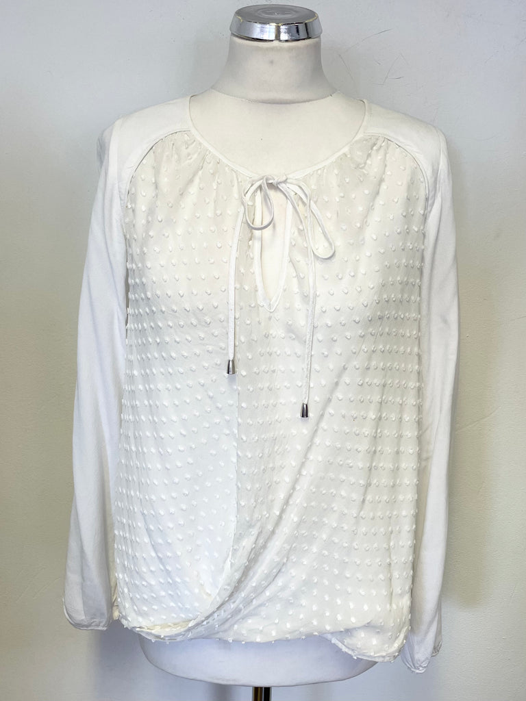 MINT VELVET WHITE SPOT FRONT TIE FRONT LONG SLEEVE TOP SIZE 14