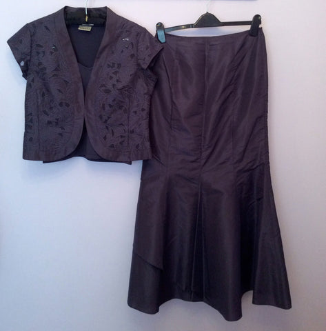 Minuet Mulberry Long Evening Skirt, Fine Knit Top & Cap Sleeve Jacket Suit