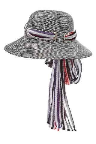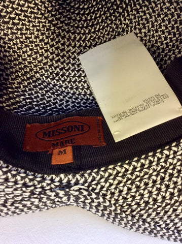 BRAND NEW MISSONI MARE BLACK & WHITE WEAVE SUN HAT WITH STRIPE SCARF