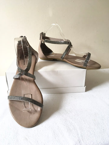 Brand New Moda In Pelle Brown Tiger Print Satin Ribbon & Charms Sandals