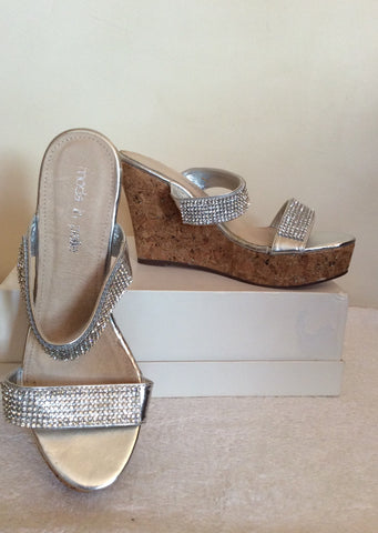 Brand New Moda In Pelle Silver Platform Wedge Mules