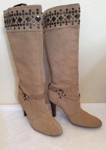 Brand New Morgan Beige Suede Studded Trim Heels Size 7.5/41