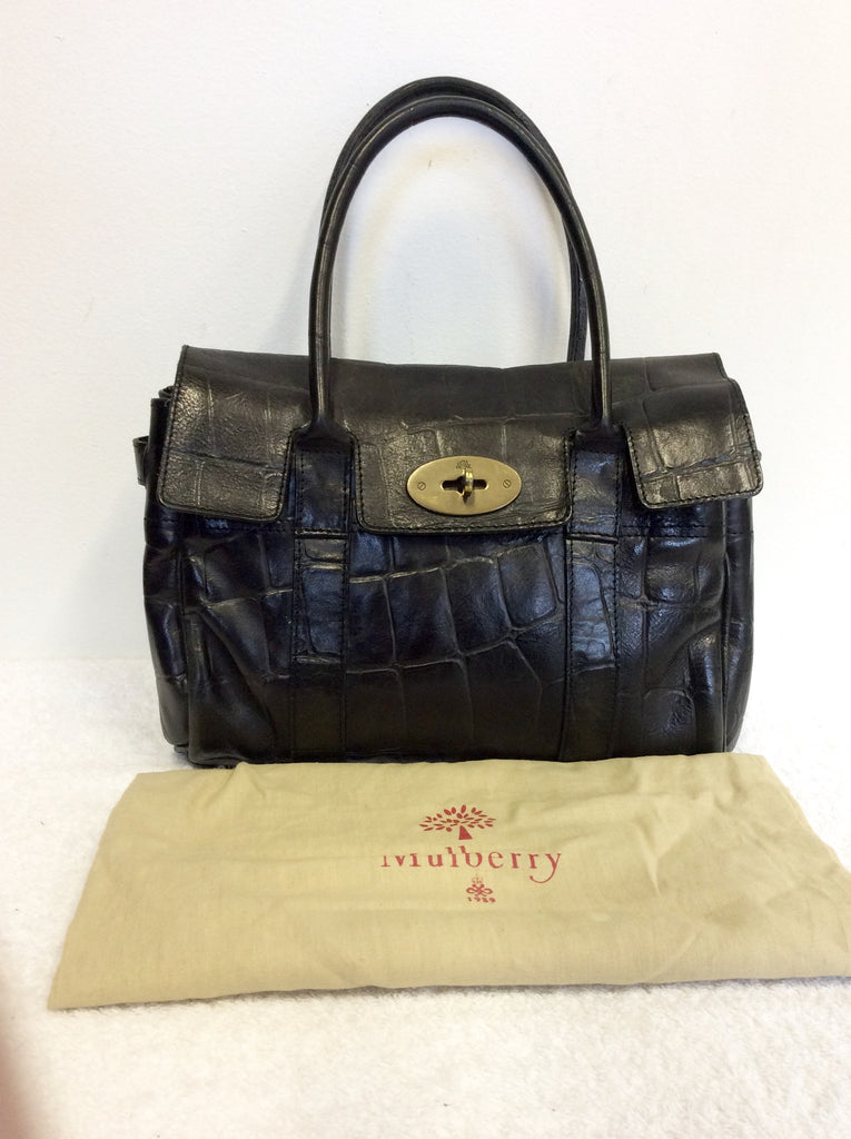 MULBERRY BLACK LEATHER CROC SMALL TOTE BAG