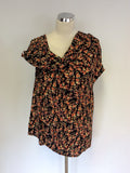 NEW NICOLE FARHI BLACK & ORANGE FLORAL PRINT SILK TOP SIZE 16