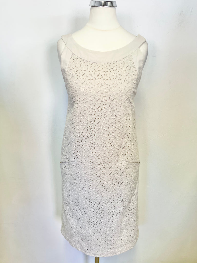 NICOLE FARHI CREAM BRODIERE ANGLAISE SLEEVELESS SHIFT DRESS SIZE 8