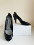 NINE WEST BLACK LEATHER SNAKESKIN DESIGN PEEPTOE HEELS SIZE 5/38