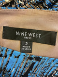 NINE WEST TURQOUISE,BLACK, CREAM & BROWN PRINT STRETCH DRESS