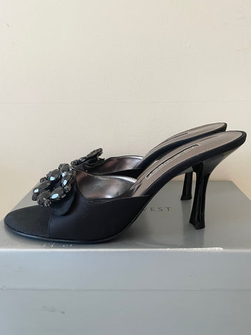 BRAND NEW NINE WEST BLACK TIE SATIN JEWEL TRIM HEELED MULES SIZE 4/37