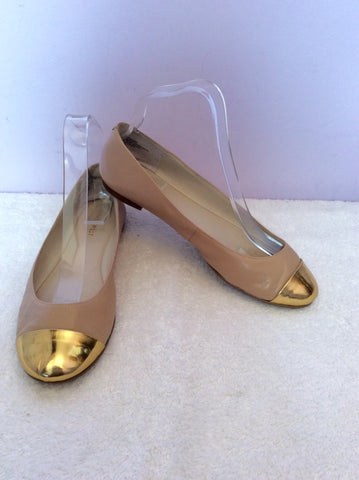 Nine West Beige & Gold Toe Tip Leather Flat Shoes Size 4/37
