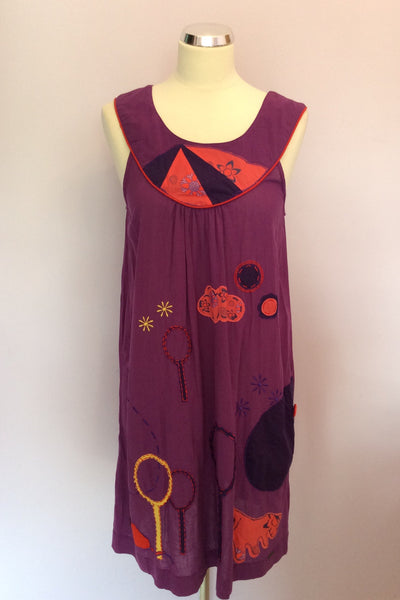 Numph Purple Embroidered Print Shift Dress Size 14