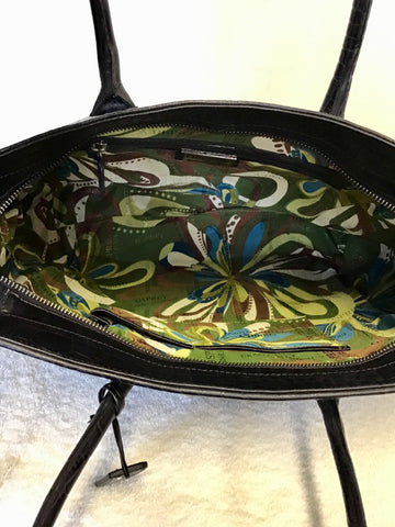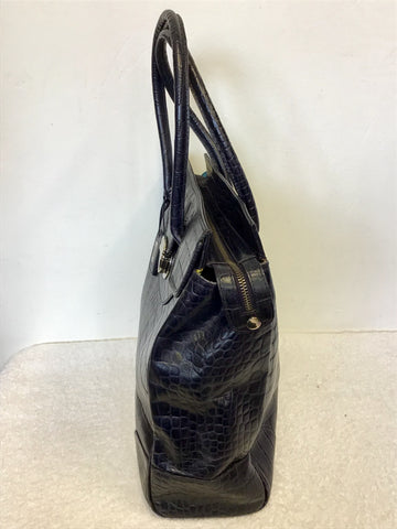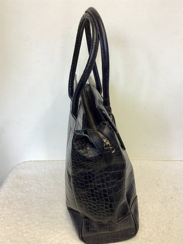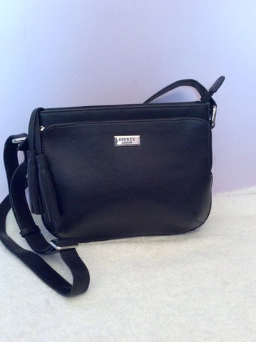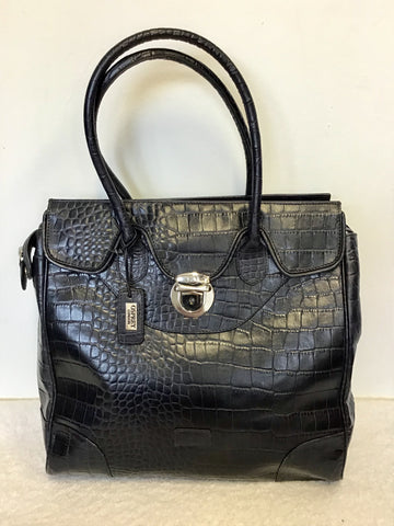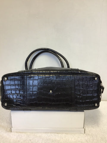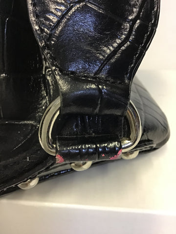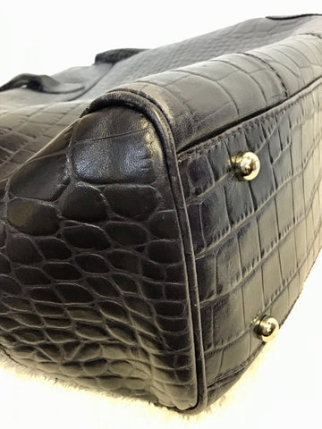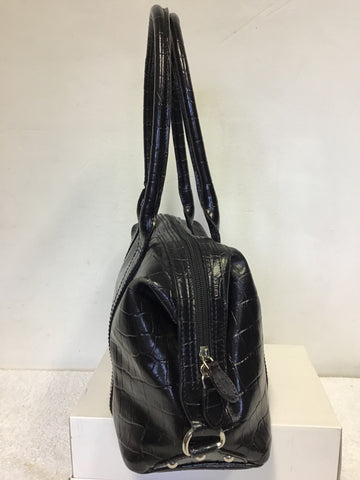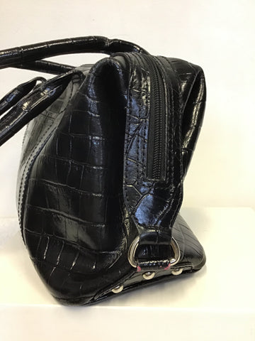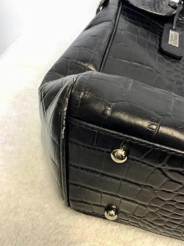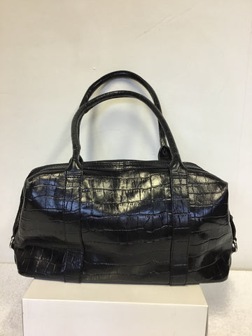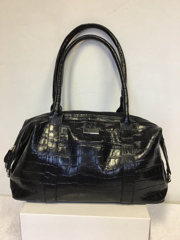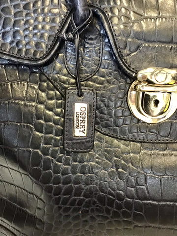 OSPREY BLACK MOCK CROC LEATHER SHOULDER BAG