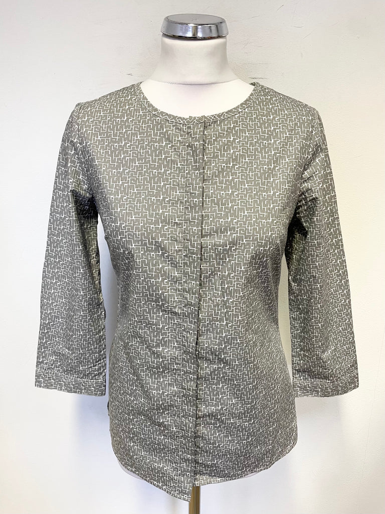 PAUL COSTELLO GREY PRINT COLLARLESS 3/4 SLEEVE SHIRT SIZE 8