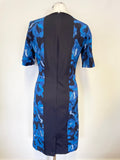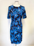 PAUL SMITH BLACK LABEL BLUE FLORAL PRINT SHORT SLEEVE PENCIL DRESS SIZE 42 UK 10