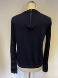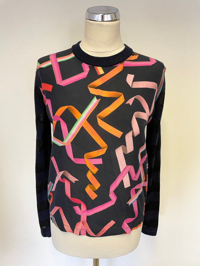 PAUL SMITH NAVY BLUE WOOL KNIT & MULTI COLOURED SILKY FRONT JUMPER SIZE M