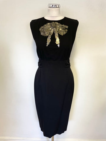 PAUL SMITH BLACK WOOL SEQUIN BOW TRIMMED SLEEVELESS PENCIL DRESS