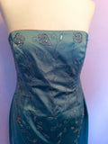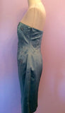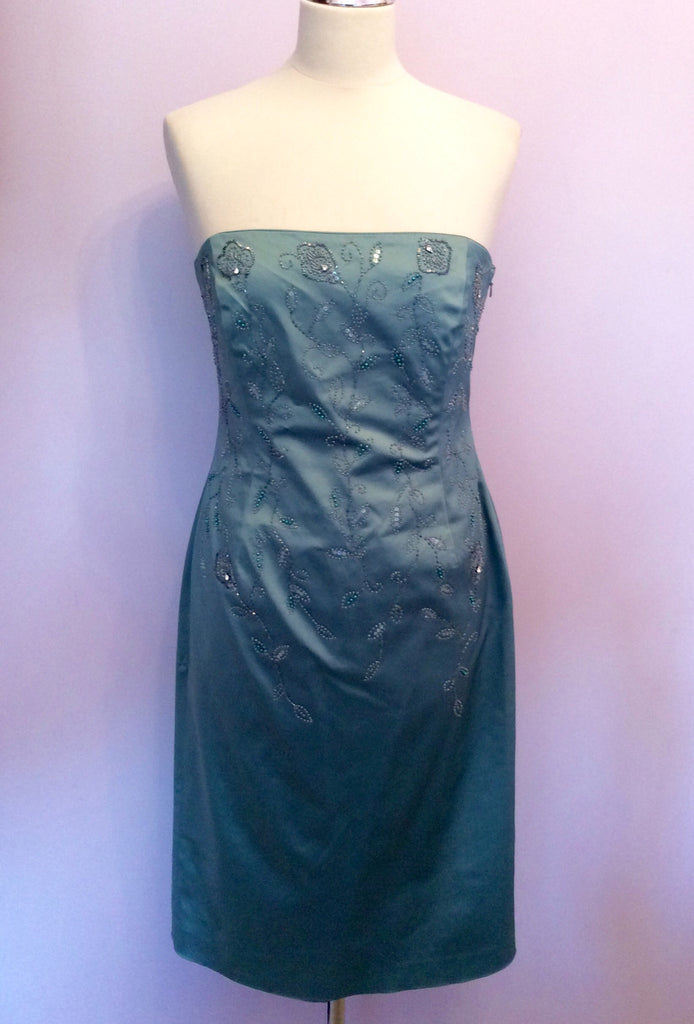 Pearce Fionda Green Satin Bead & Sequin Strapless Dress Size 12