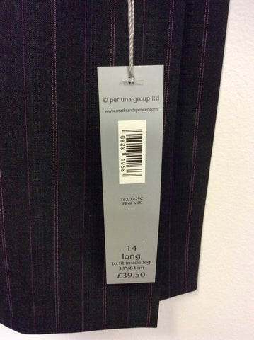 BRAND NEW PER UNA GREY & PINK PINSTRIPE TROUSER SUIT SIZE 12/14