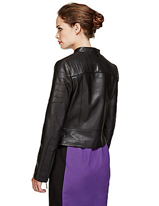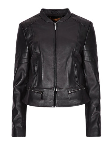 BRAND NEW PER UNA SPEZIALE BLACK SOFT LEATHER ZIP UP BIKER JACKET SIZE 14