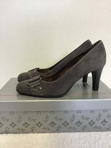 BRAND NEW PETER KAISER DARK GREY SUEDE STUDDED TRIM HEELS SIZE 4/37
