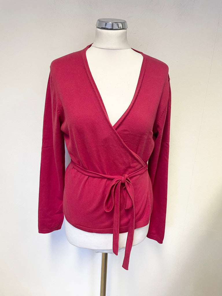 PHASE EIGHT RED WRAP ACROSS TIE WAIST LONG SLEEVE JUMPER