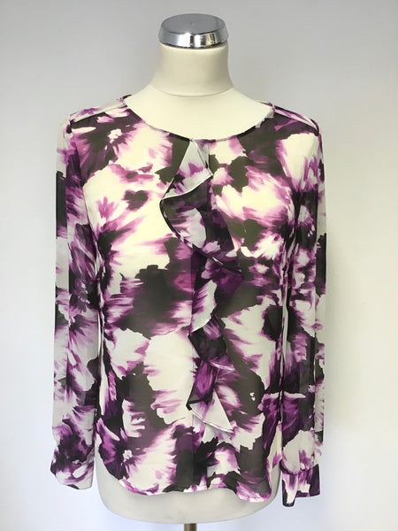 BRAND NEW PLANET BLACK,WHITE & PINKS FLORAL PRINT FRILL TRIM BLOUSE SIZE 8