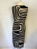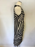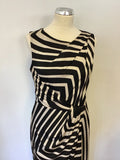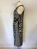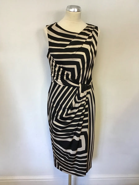 PLANET BLACK & BEIGE STRIPED DRAPED FRONT STRETCH PENCIL DRESS SIZE 10