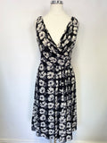PRADA BLACK, GREY & IVORY FLORAL PRINT SILK SLEEVELESS FIT & FLARE DRESS SIZE 38 UK 6