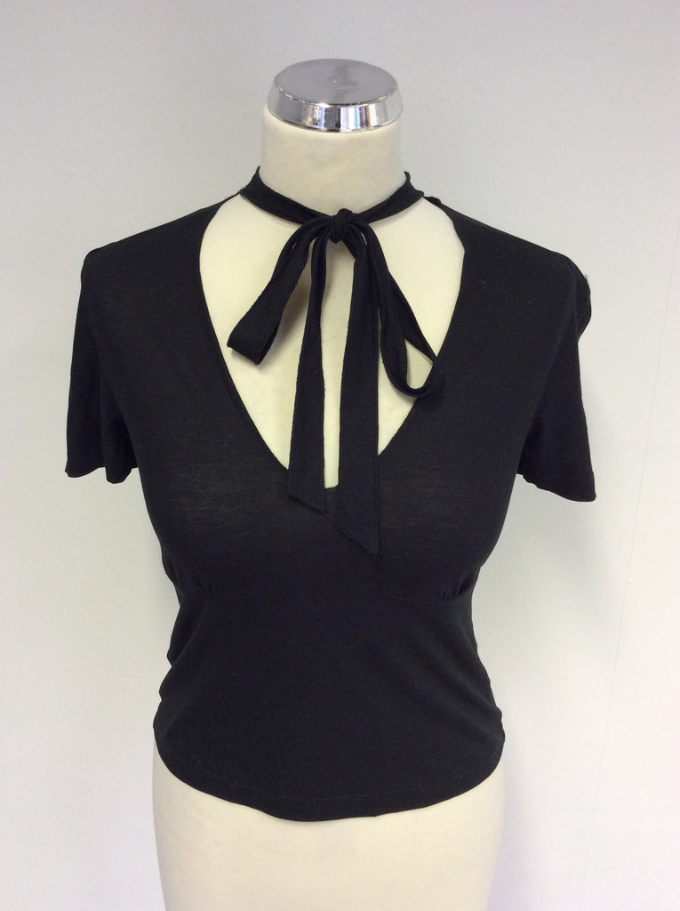 PRADA BLACK TIE NECK SHORT SLEEVE TOP SIZE M