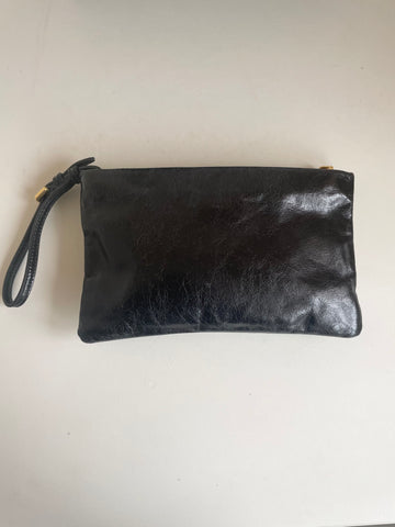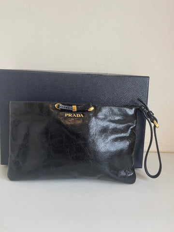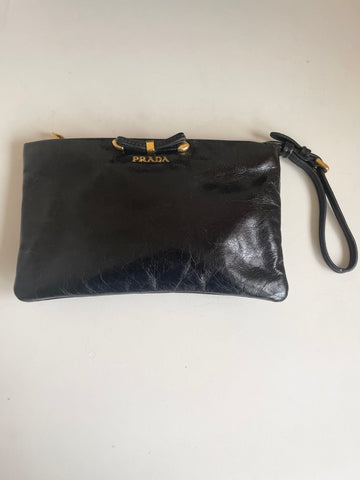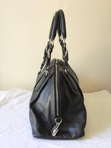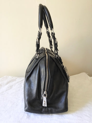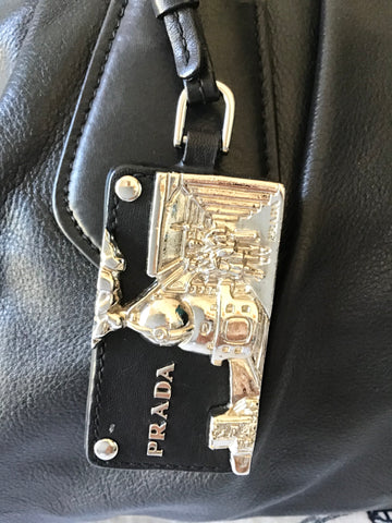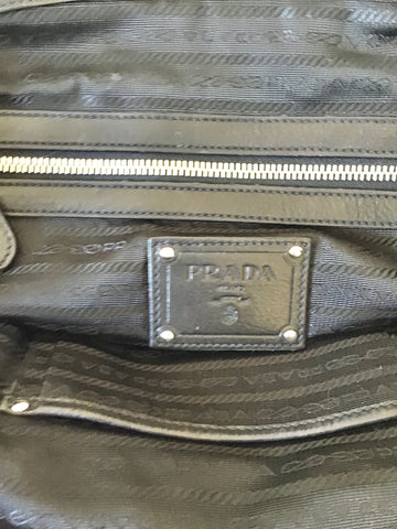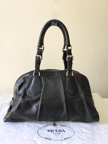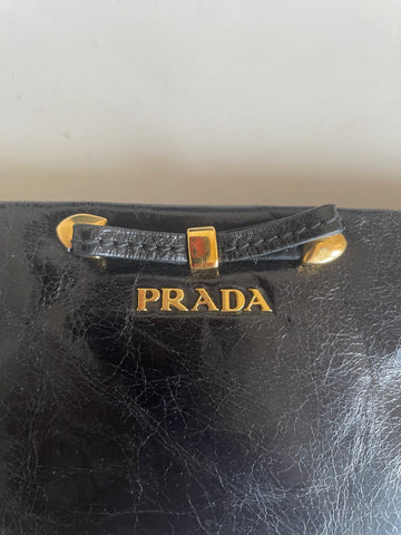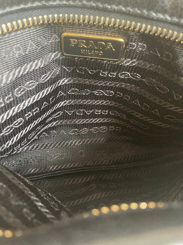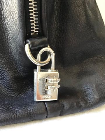 PRADA BLACK LEATHER ZIP TOP SHOULDER BAG