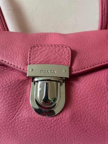 PRADA FLAMINGO PINK LEATHER SHOULDER BAG