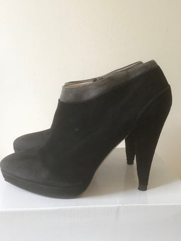 PRADA PEWTER METALLIC ANKLE STRAP HEEL SANDALS SIZE 3.5/36