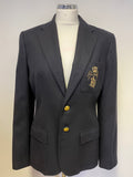 BRAND NEW RALPH LAUREN NAVY BLUE 100% WOOL WITH GOLD CREST BLAZER SIZE 10