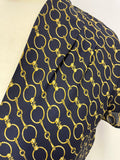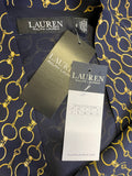 BRAND NEW WITH TAGS RALPH LAUREN NAVY BLUE & GOLD HORSE BIT PRINT BELTED DRESS