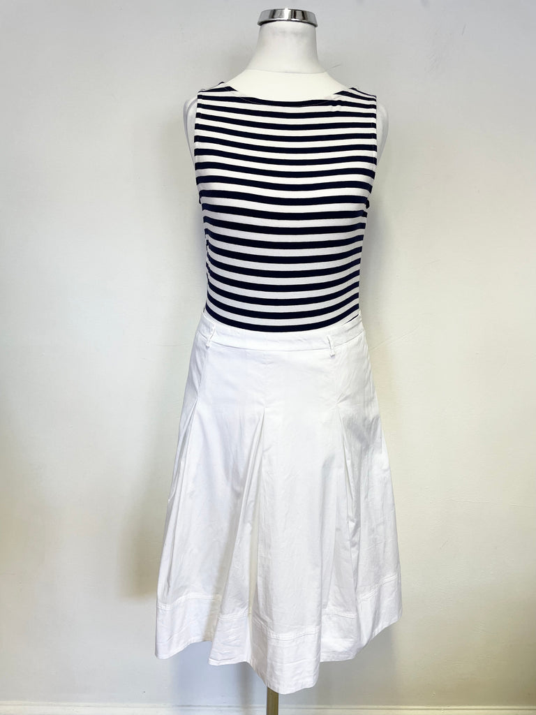 LAUREN RALPH LAUREN NAVY & WHITE STRIPE TOP SLEEVELESS FIT & FLARE DRESS SIZE 4 UK 8