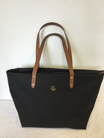 RALPH LAUREN BLACK LEATHER TOTE BAG