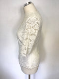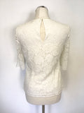 REISS MITSY OFF WHITE LACE SHORT SLEEVE TOP SIZE 8