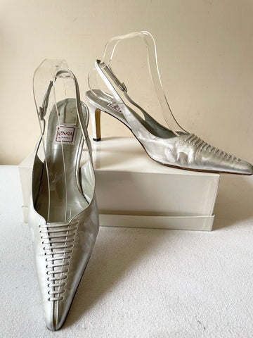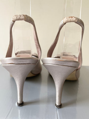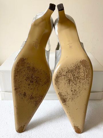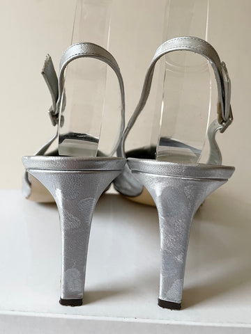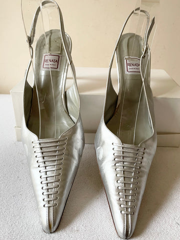 RENATA SILVER LEATHER POINTED TOE SLINGBACK HEELS SIZE 7.5/41