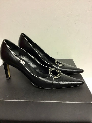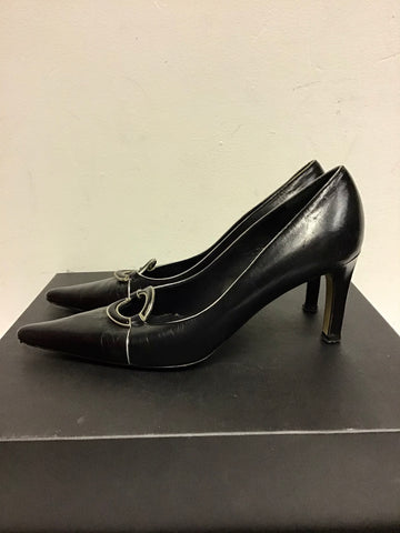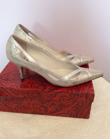 Renata Silver Leather Heeled Court Shoes Size 6.5/39.5