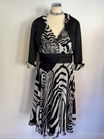 BRAND NEW RENATA BLACK & WHITE ZEBRA PRINT DRESS & BOLERO JACKET SIZE 16