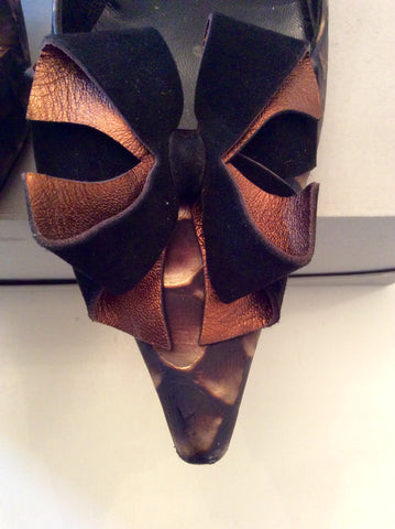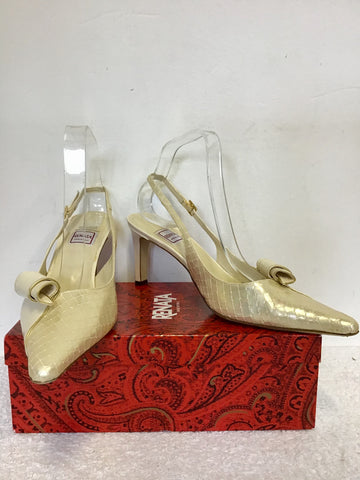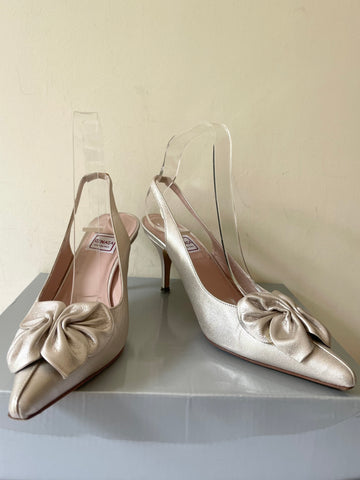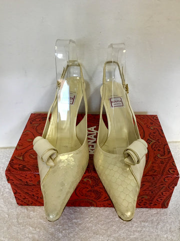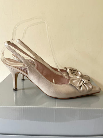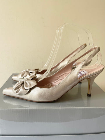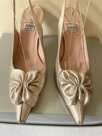 RENATA PALE GOLD LEATHER BOW TRIM SLINGBACK HEELS SIZE 4.5/ 37.5