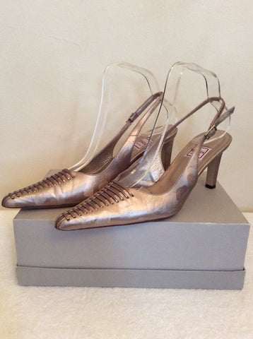 Renata Pale Gold Leather Slingback Heels Size 4/37