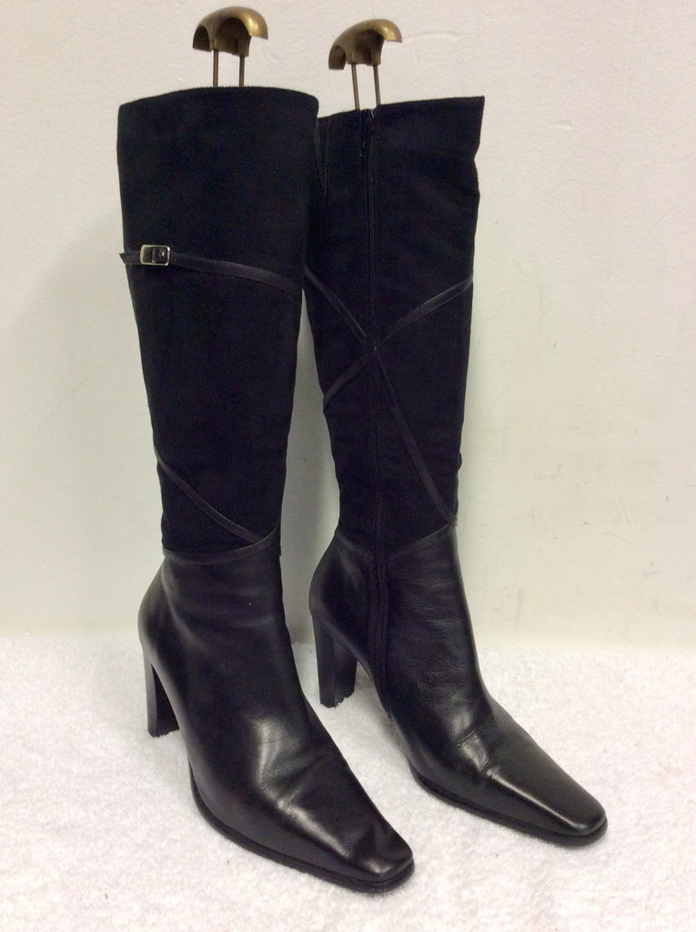 ROBERTO VIANNI BLACK SUEDE & LEATHER KNEE LENGTH BOOTS