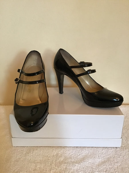 RUSSELL & BROMLEY BLACK PATENT LEATHER HEELS SIZE 6.5/39.5